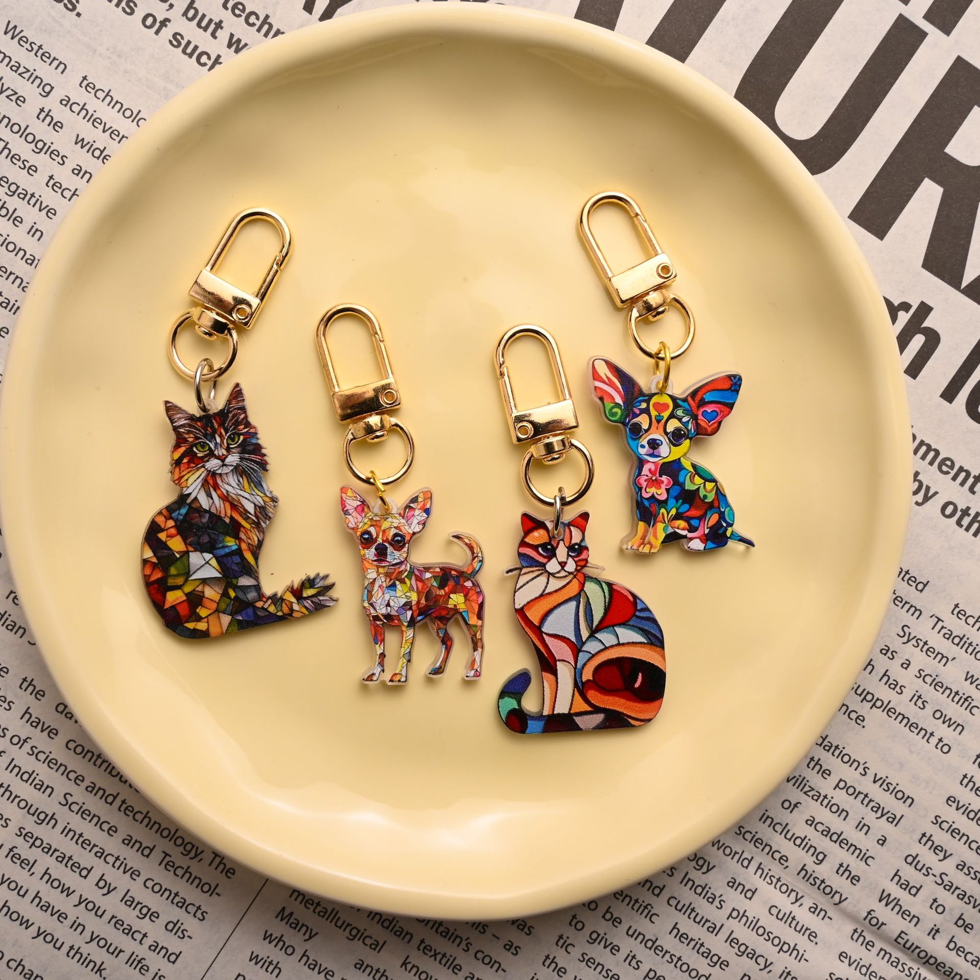 Animal Theme Cartoon Cat Puppy Acrylic Keychain