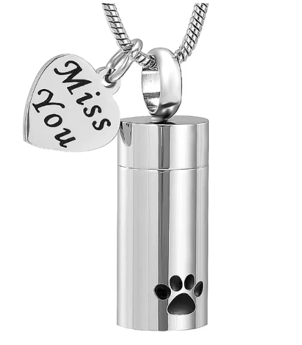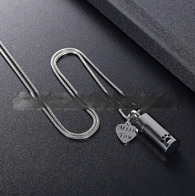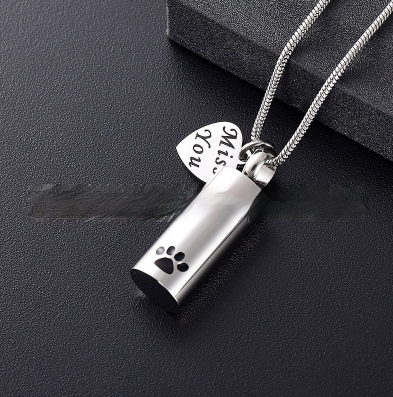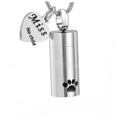 Ashes Necklace Can Be Opened Cylindrical Paw Print Cinerary Casket Pendant Ornaments