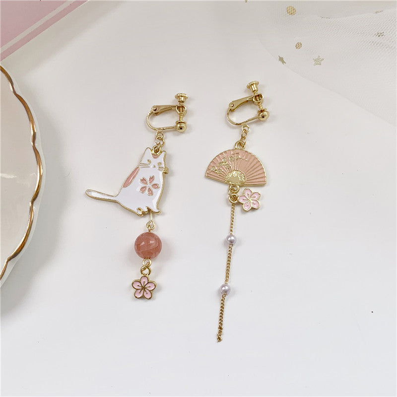 Asymmetrical Stud Earrings Flower Tassel Earring Ear Clip