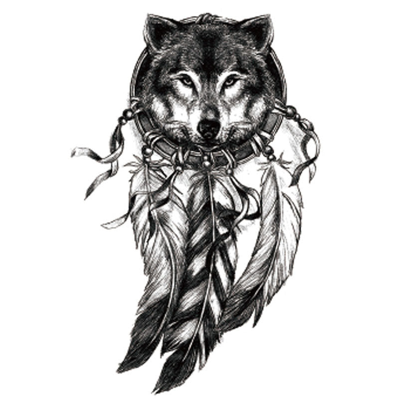 Black Wolf Head Dreamcatcher Fake Tattoo Sticker