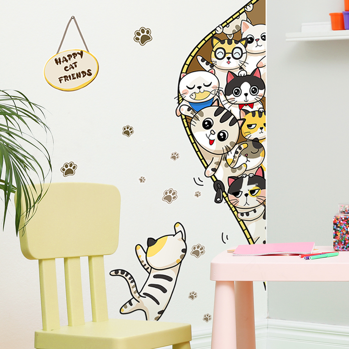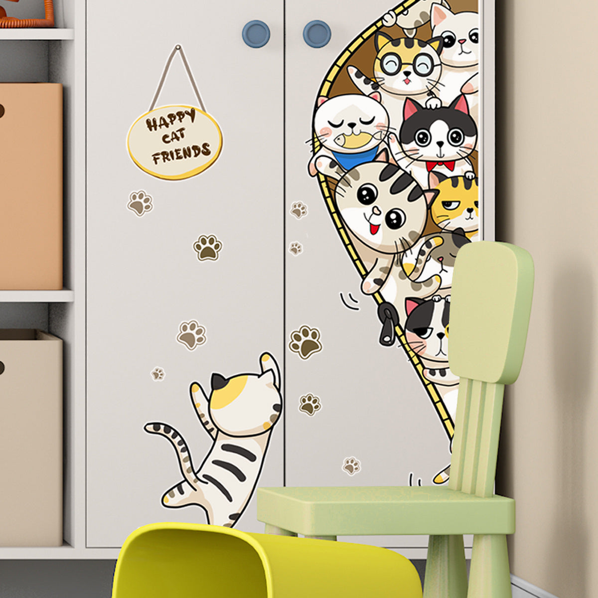 Cartoon Animal Naughty Kitten Decorative Wall Sticker