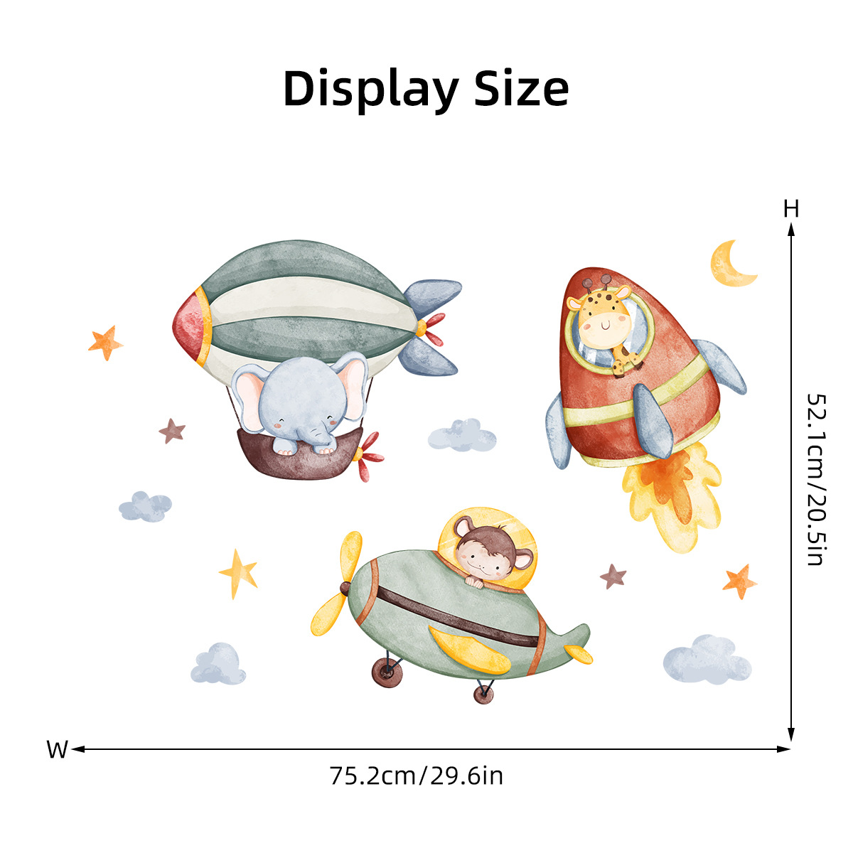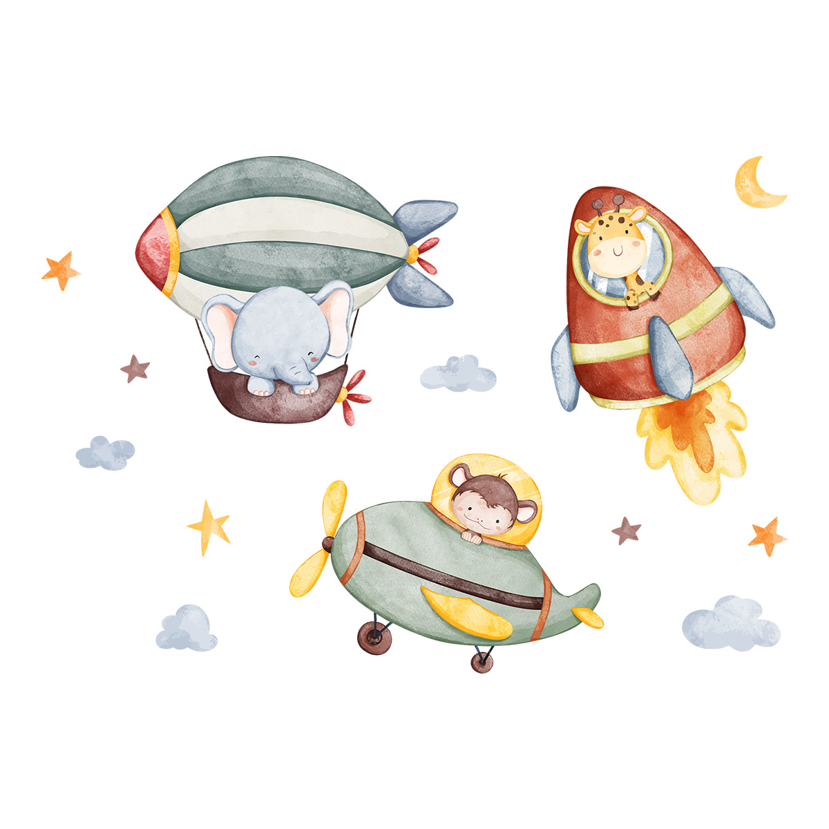 Cartoon Cute Elephant Animal Rocket Hot Air Balloon Wall Sticker