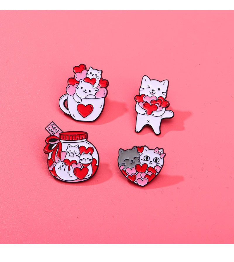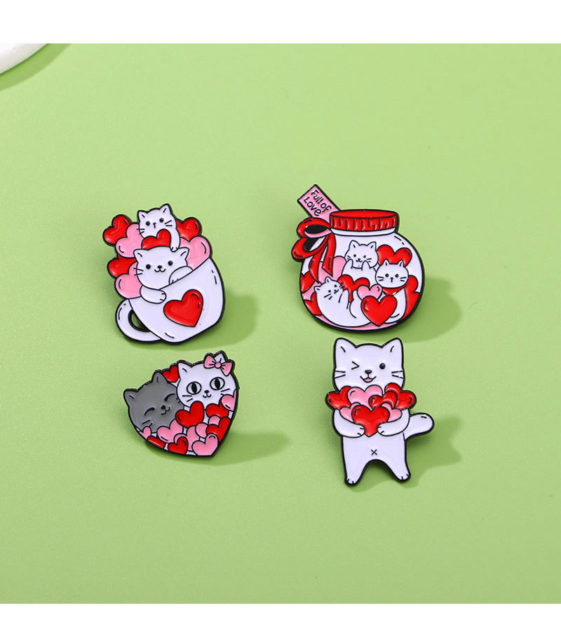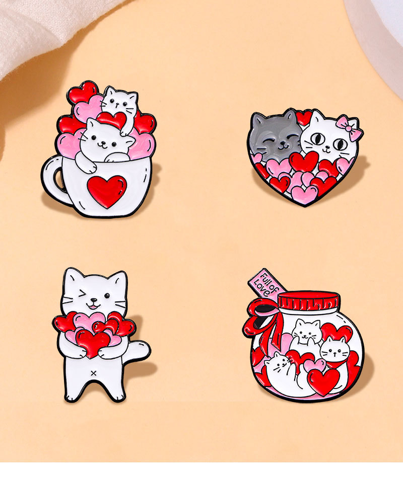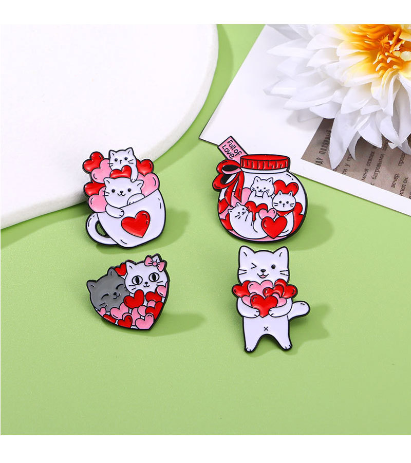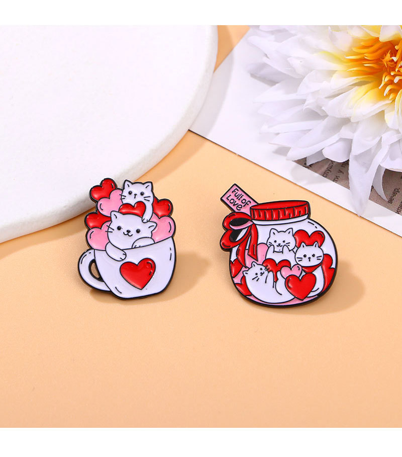 Creative Cartoon Cup Kitty Brooch Cute Love Heart