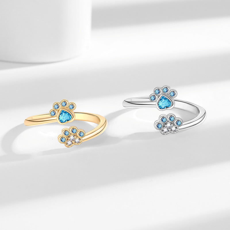 Cute Pet Paw Print Ring Female Fashion Color Zircon Ring