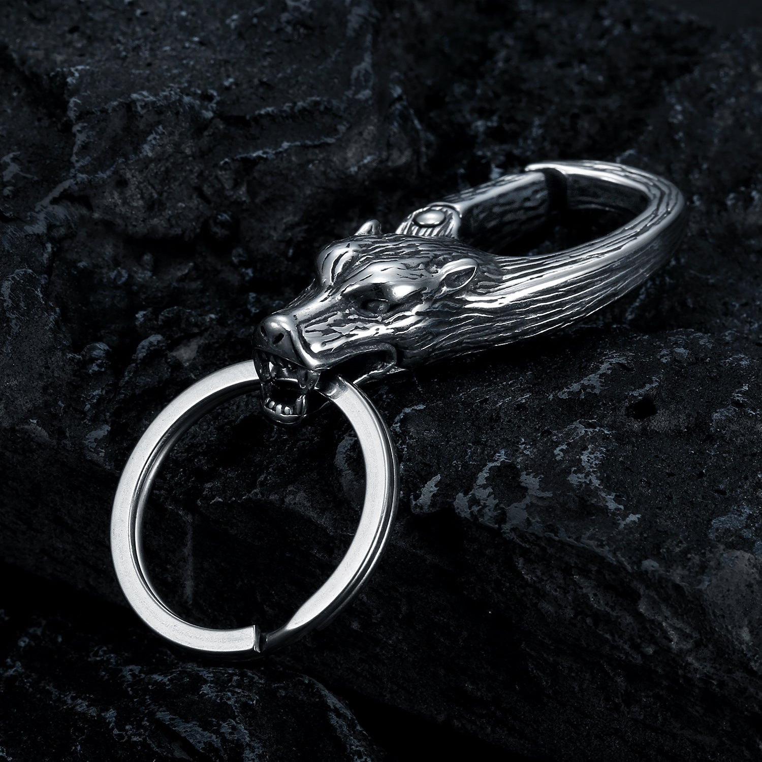 European And American Fashion Wolf Head Stainless Steel Keychain