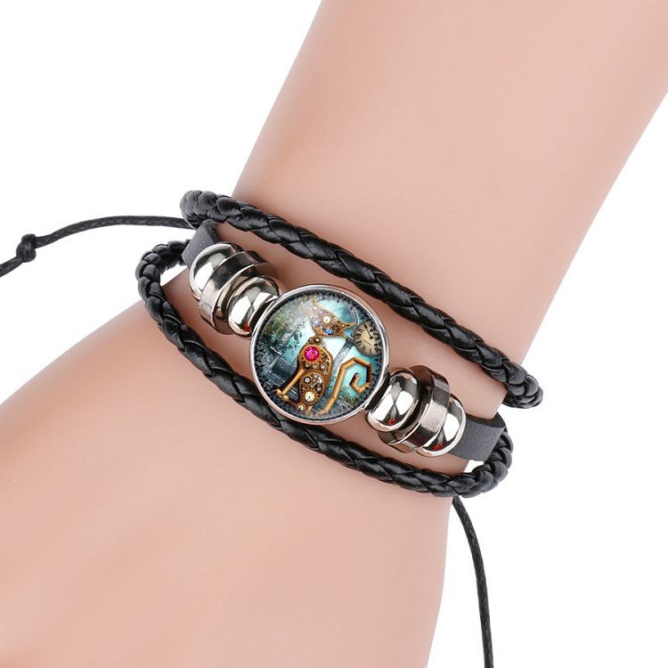 Gear Clock Steampunk Cat Time Stone Hand Weaving Bracelet