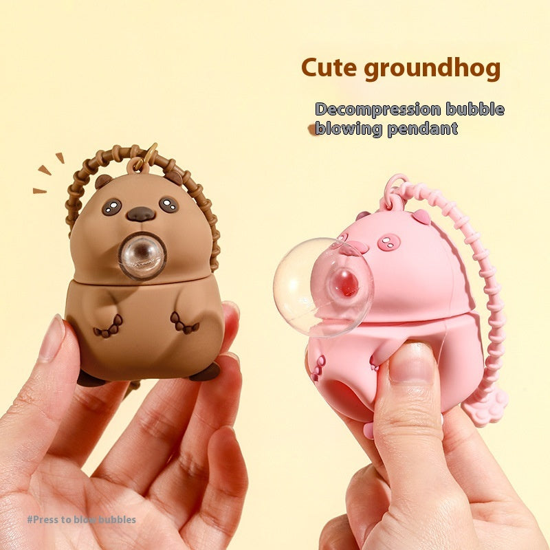 Groundhog Squeezing Toy Bubble Blowing Car Keychain Pendant