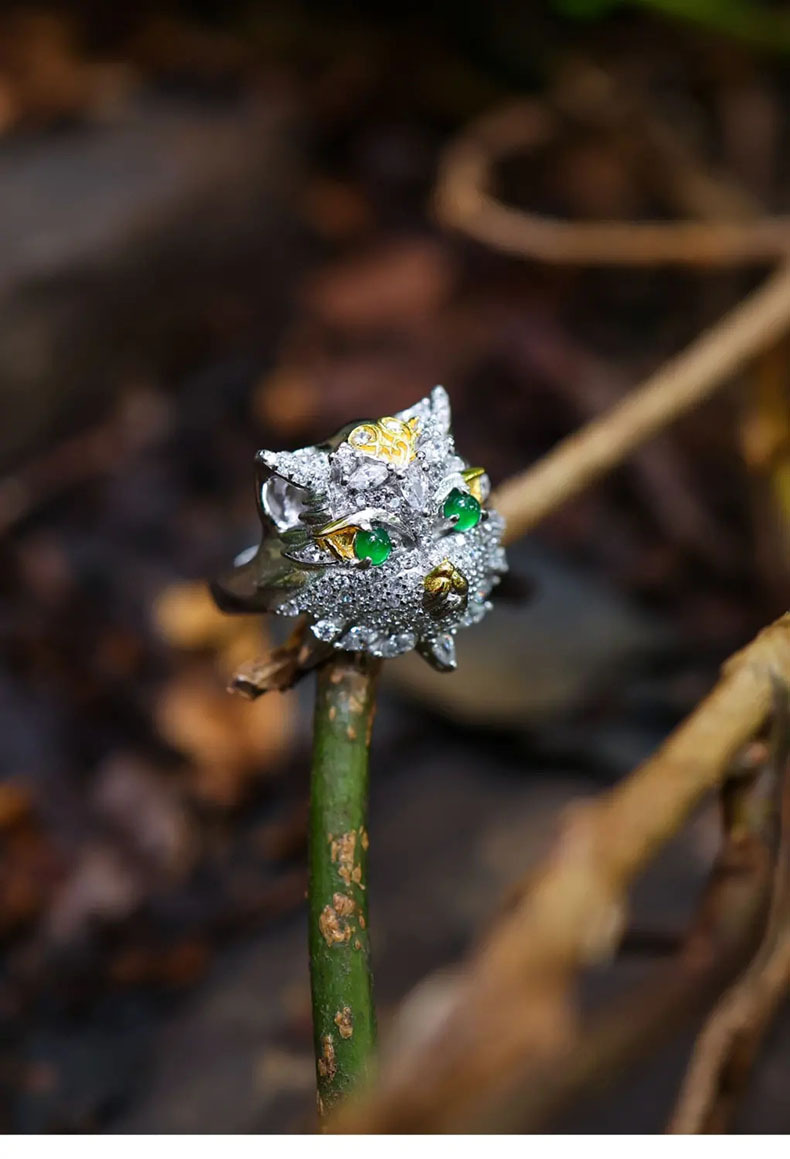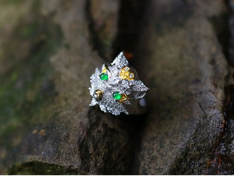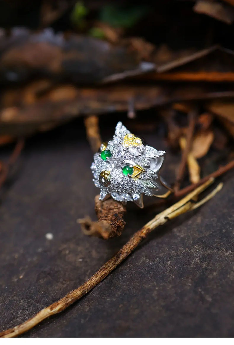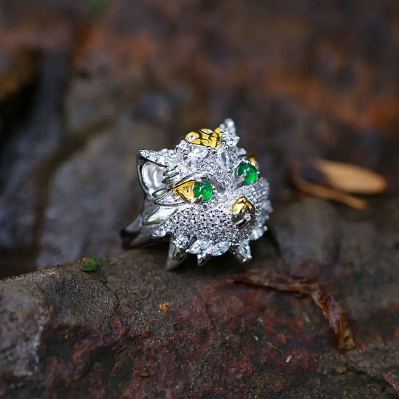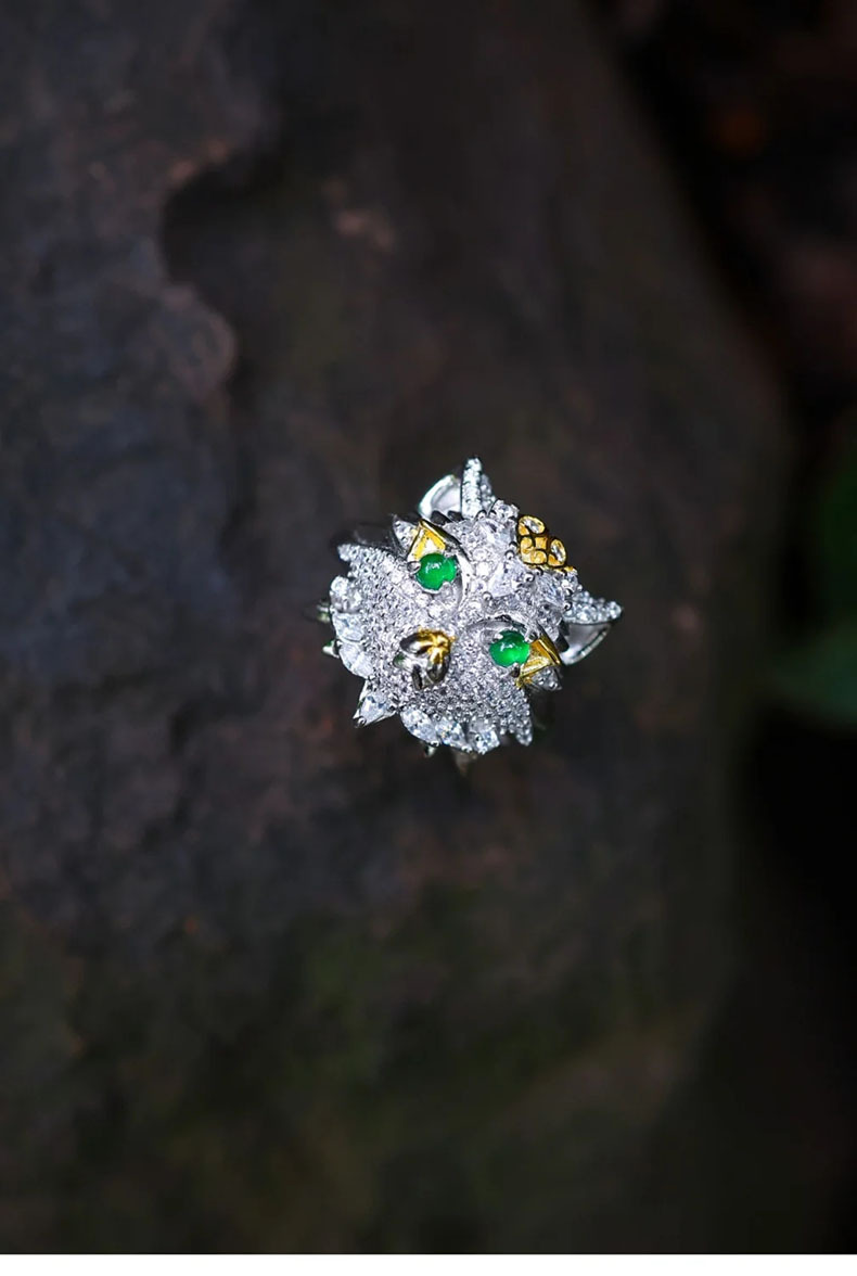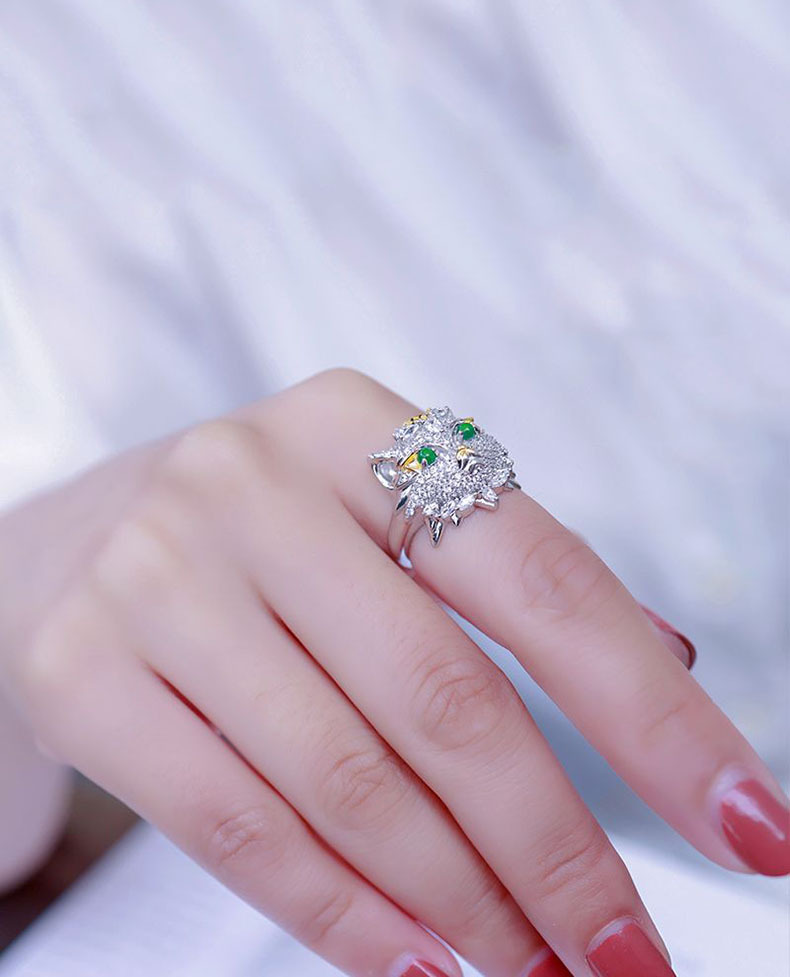 Natural Emerald Animal Owl Ring