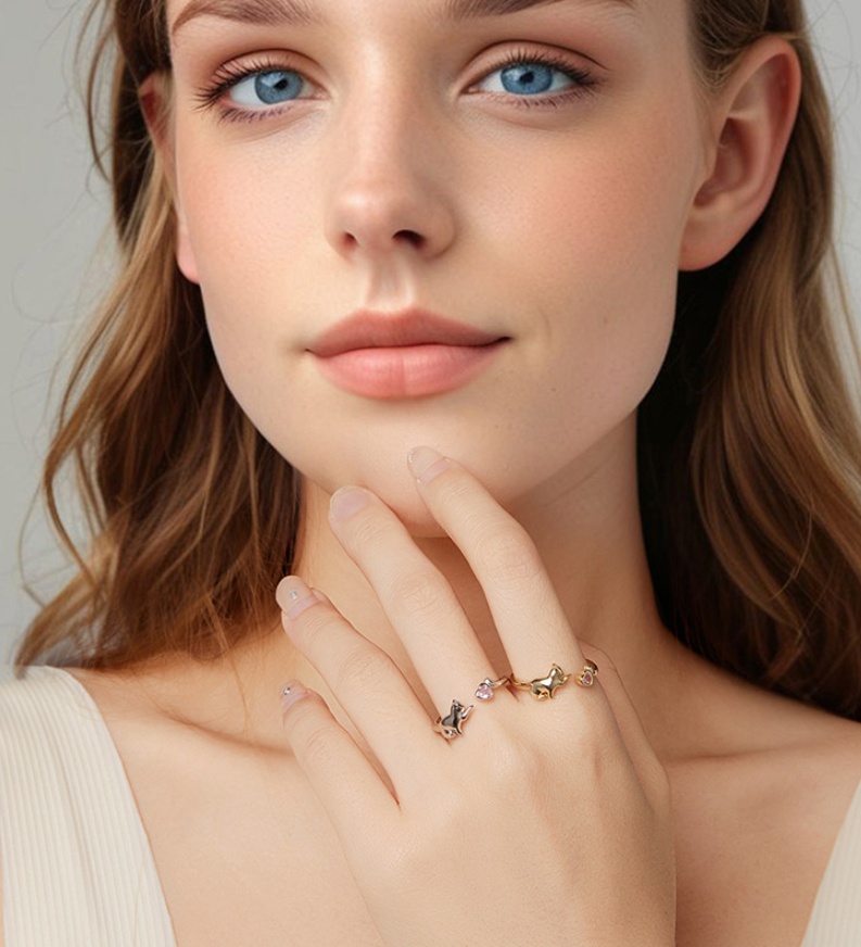 Original Pink Loves And Cats Open Ring Sweet Cute Animal