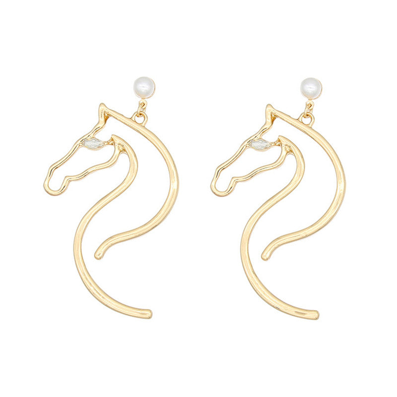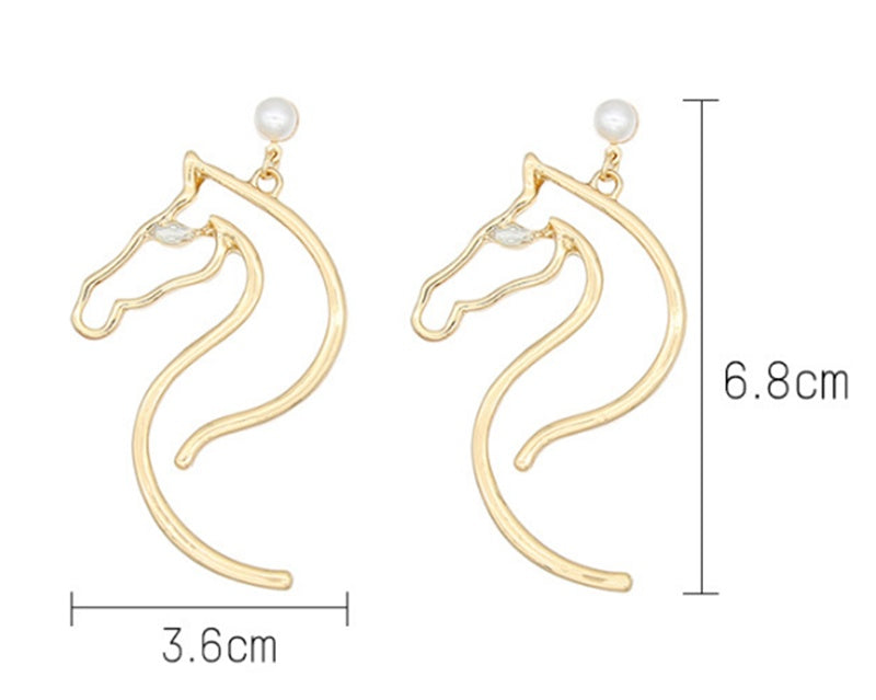 Pearl Ear Jewelry Alloy Horse Head Animal Big Earrings