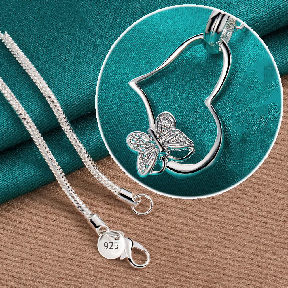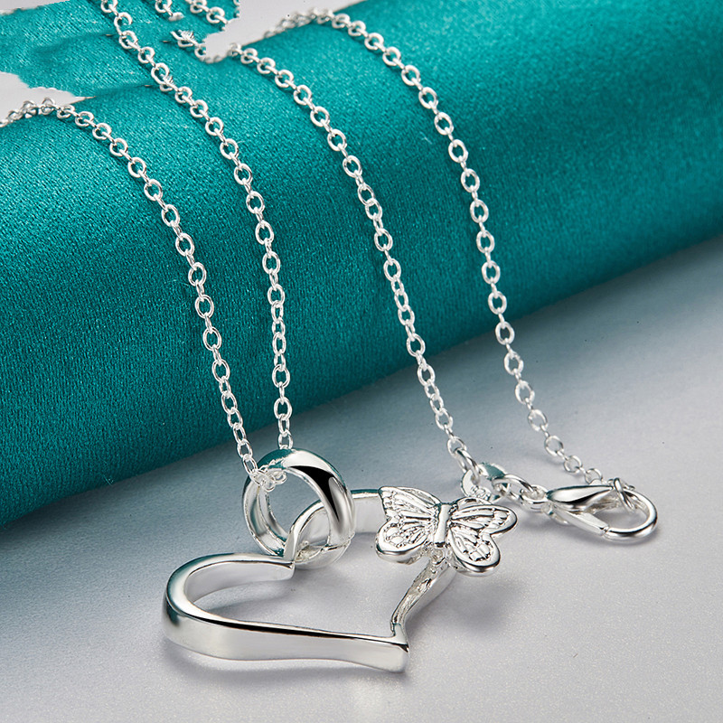 Silver Jewelry Love Butterfly Pendant Necklace Female