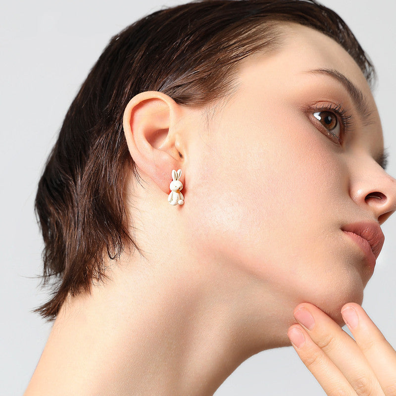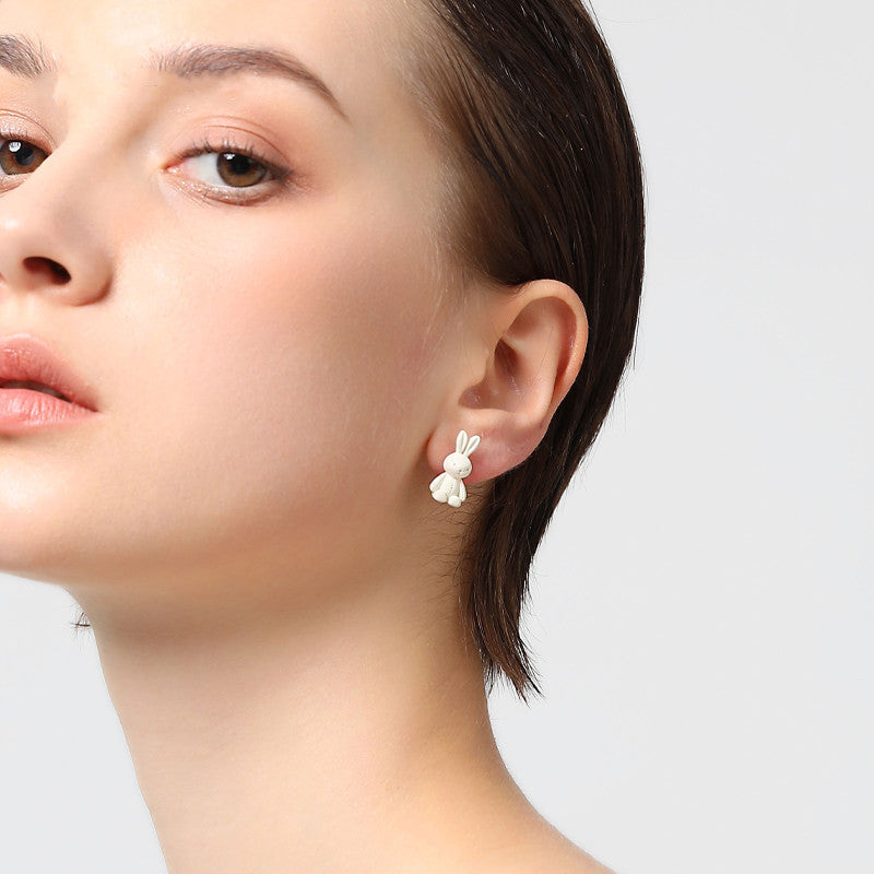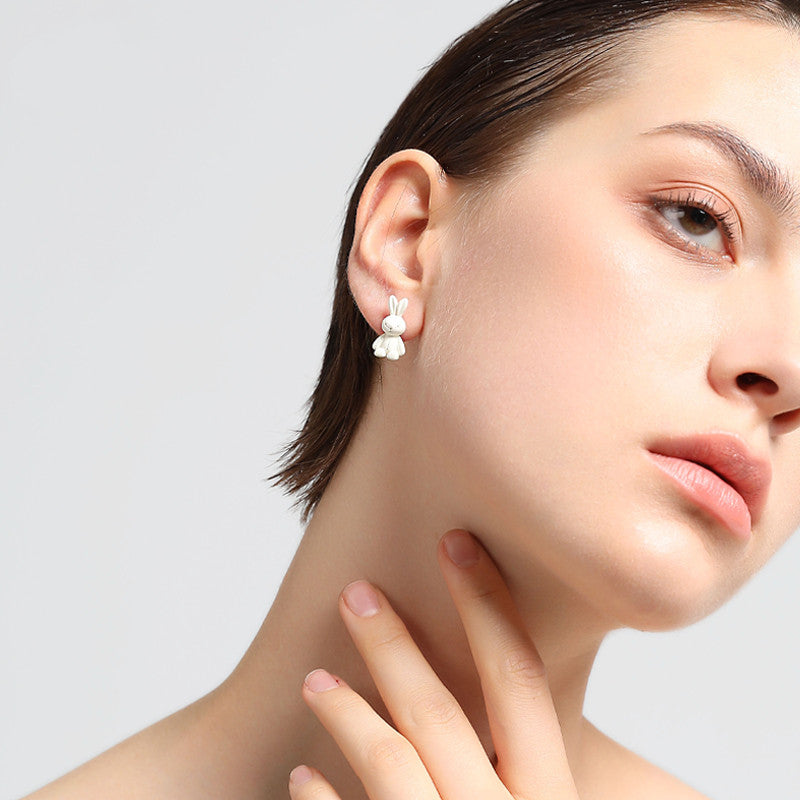Silver Needle Bunny Earrings Female Summer Personality Cute Animal Small Earrings