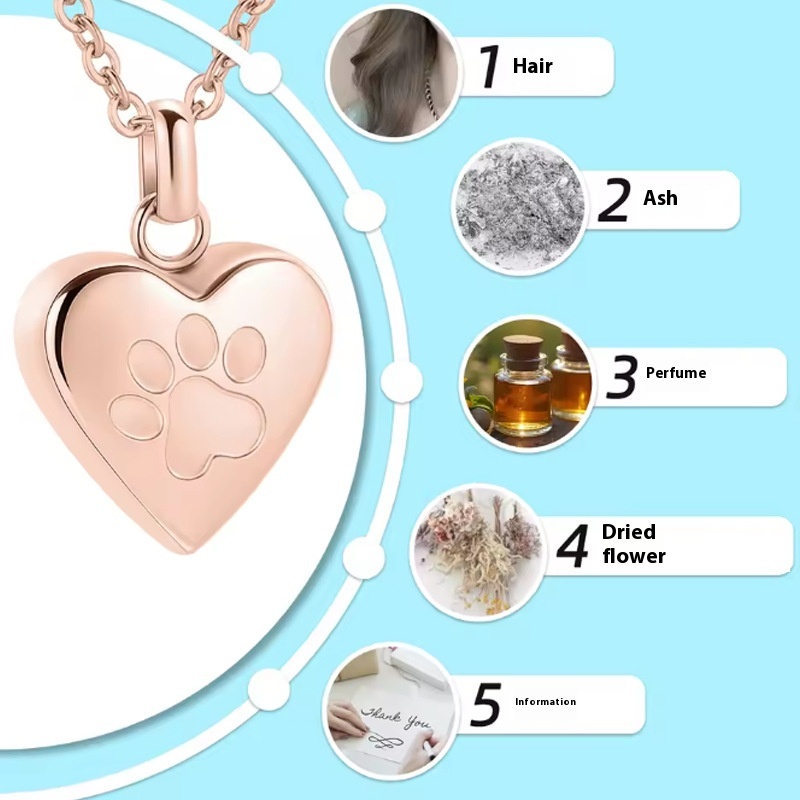 Simple Love Paw Print Titanium Steel Cinerary Casket Necklace Creative Can Be Opened