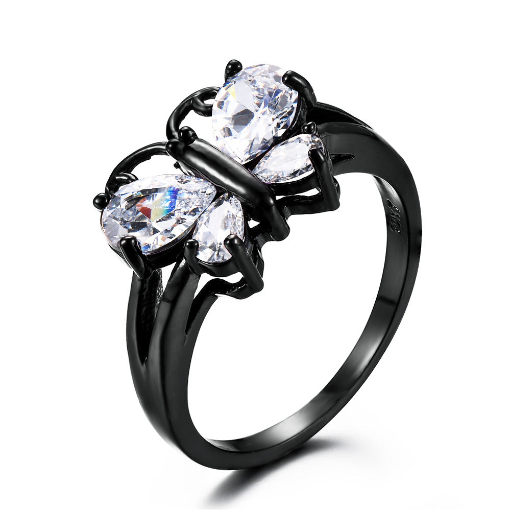 Small Animal Trend Black Gold Blue Zircon Butterfly Ring