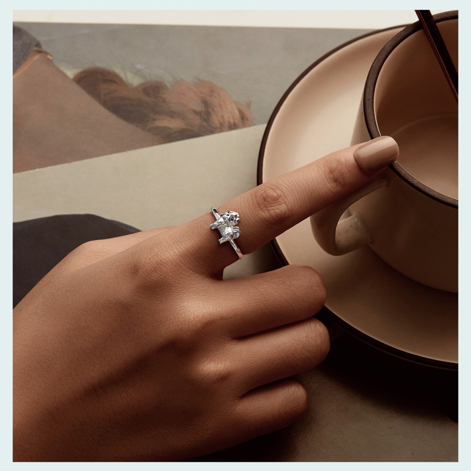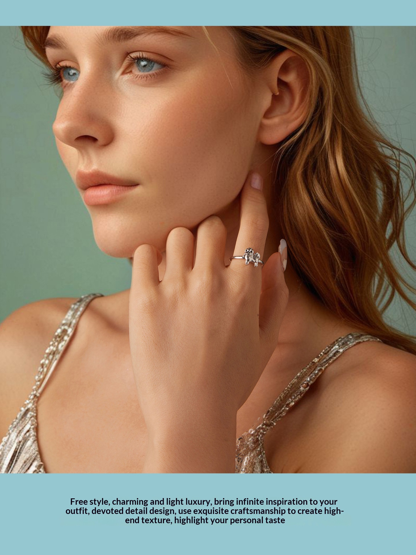 Sterling Silver Plated White Gold Animal Jewelry Ring For Women