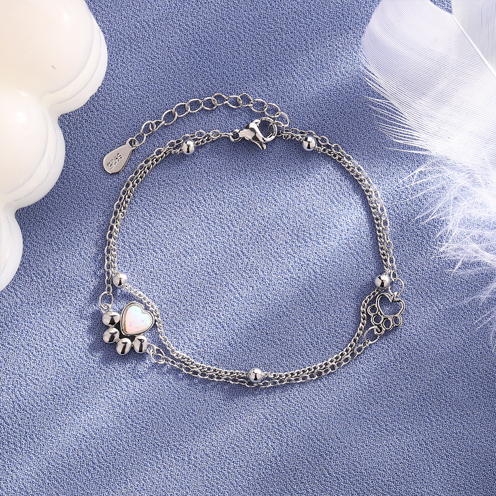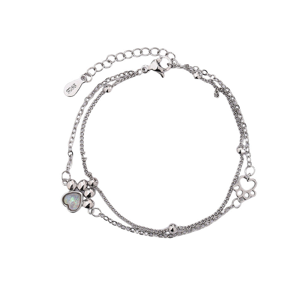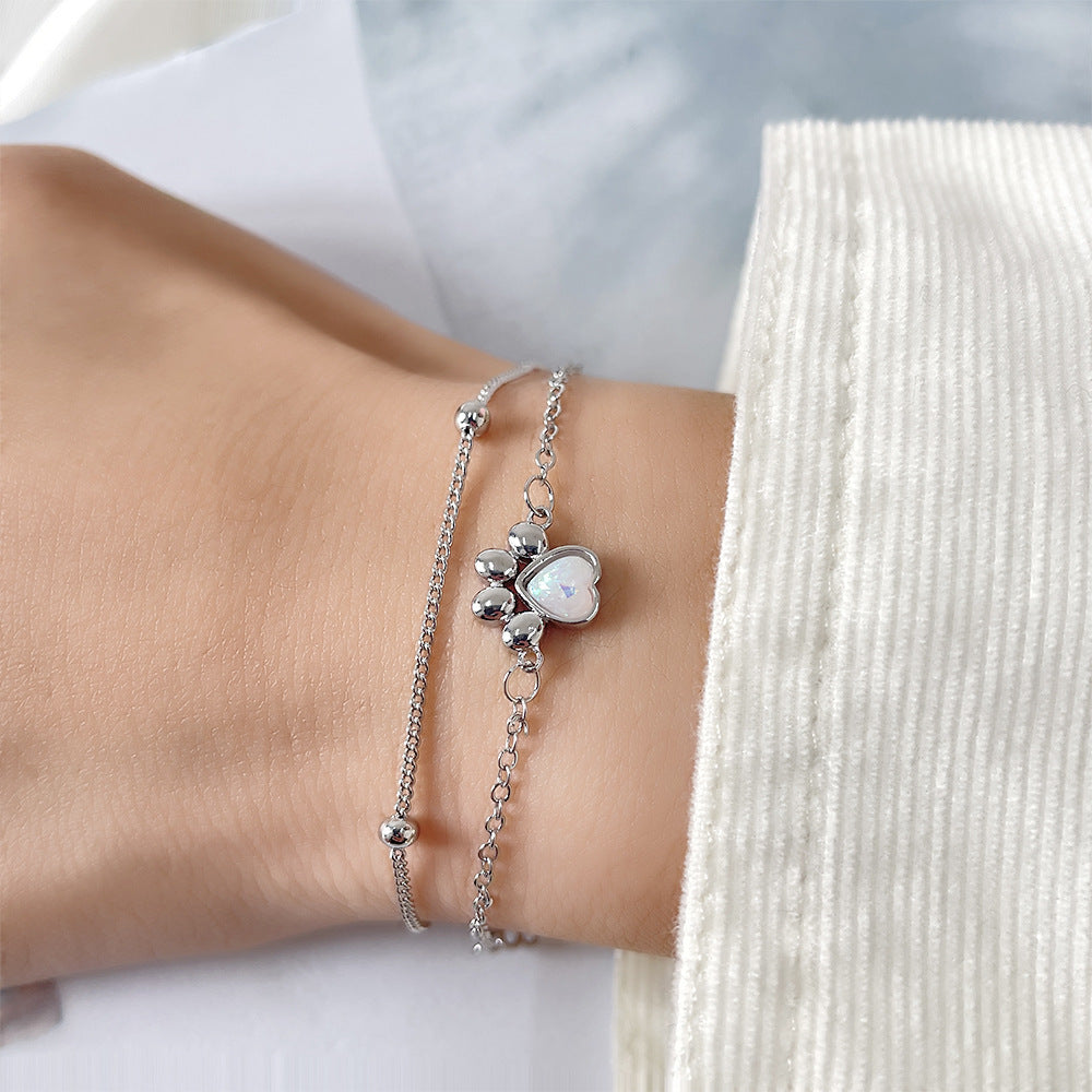Stone Cat's Paw Sweet Double Layer Cat Bracelet Girlish Style Love