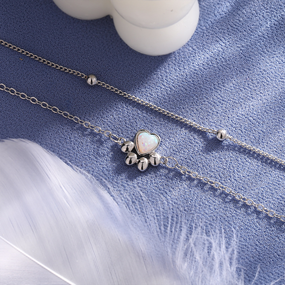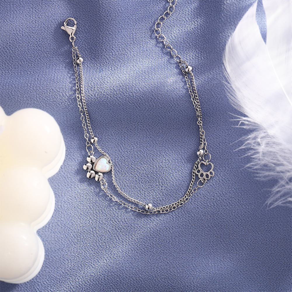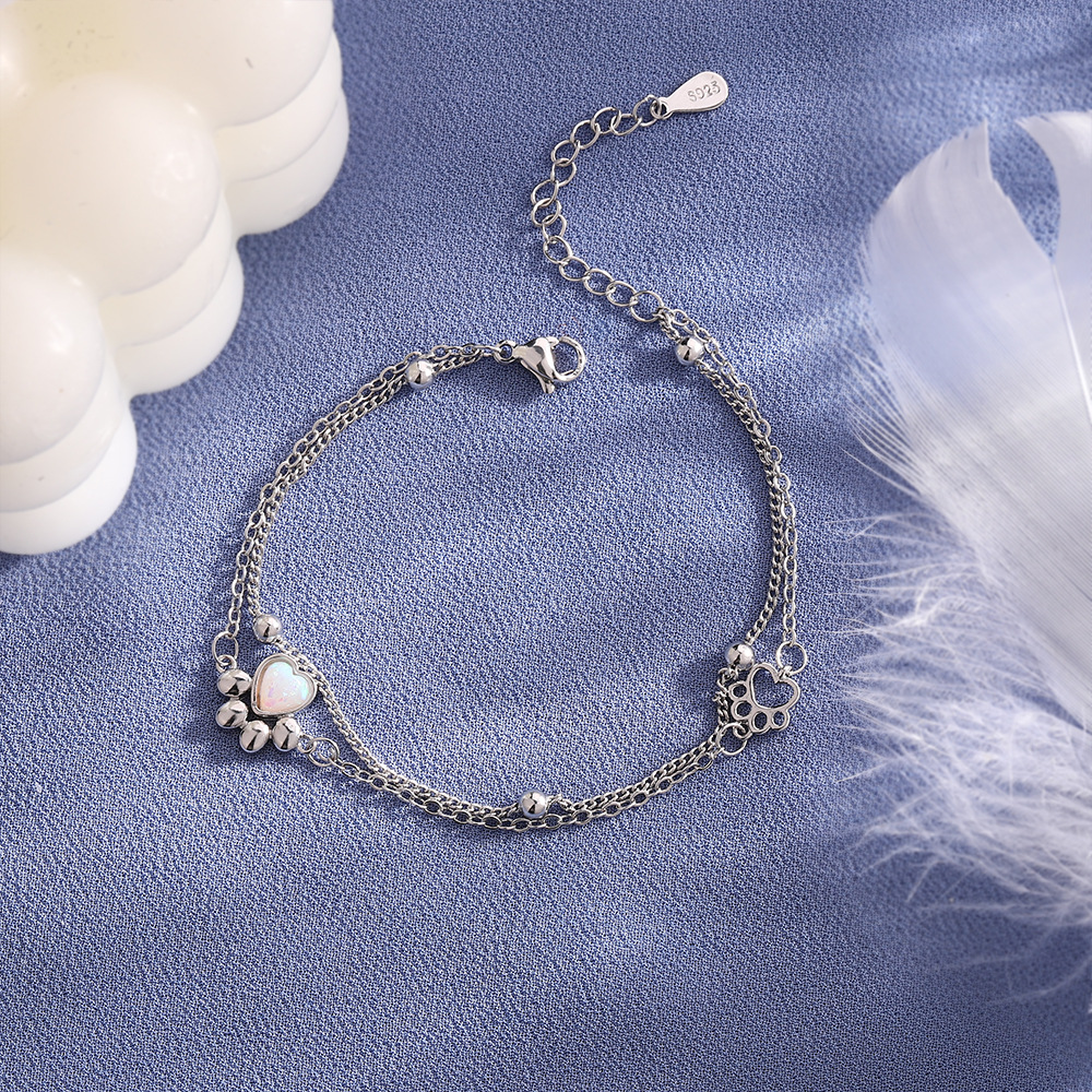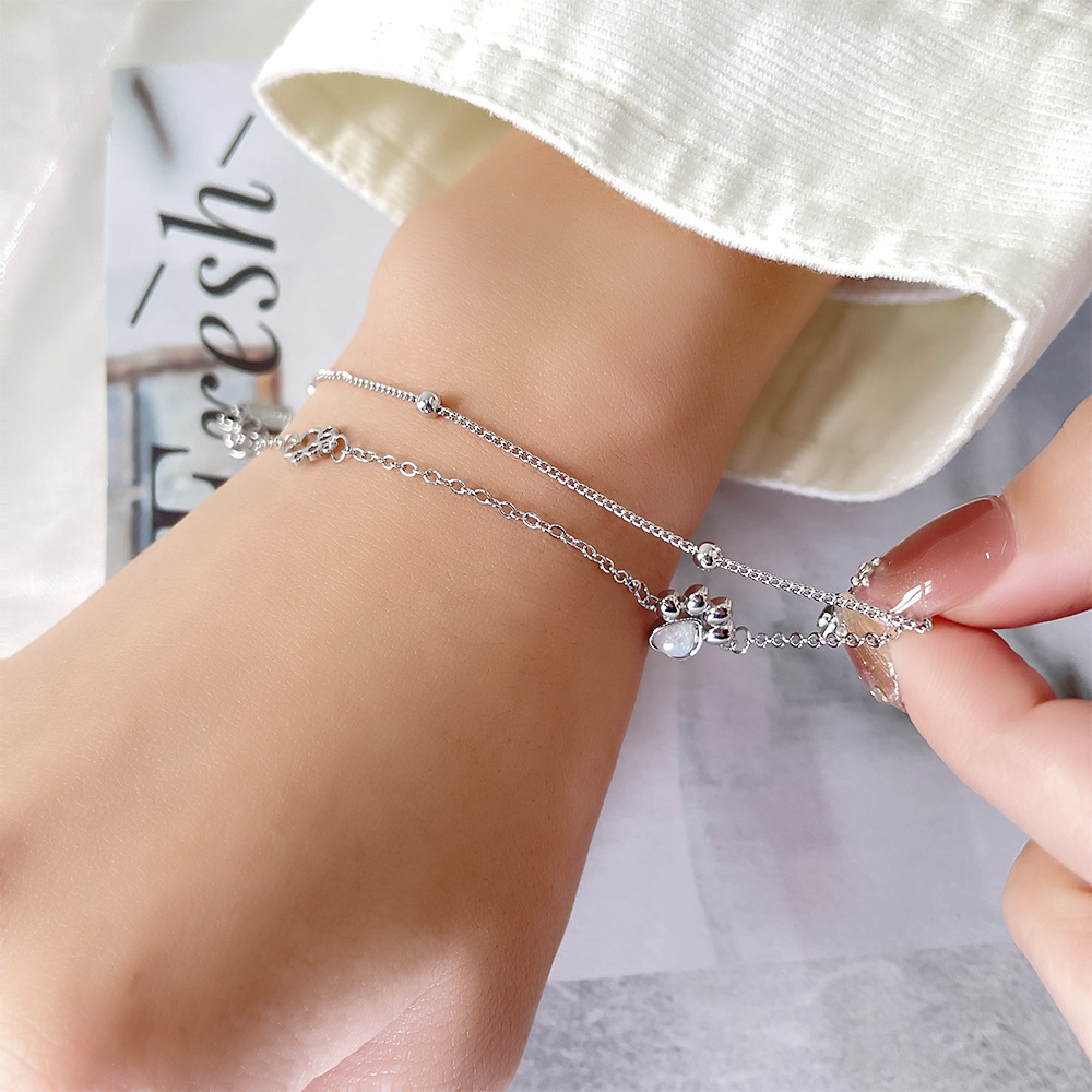 Stone Cat's Paw Sweet Double Layer Cat Bracelet Girlish Style Love