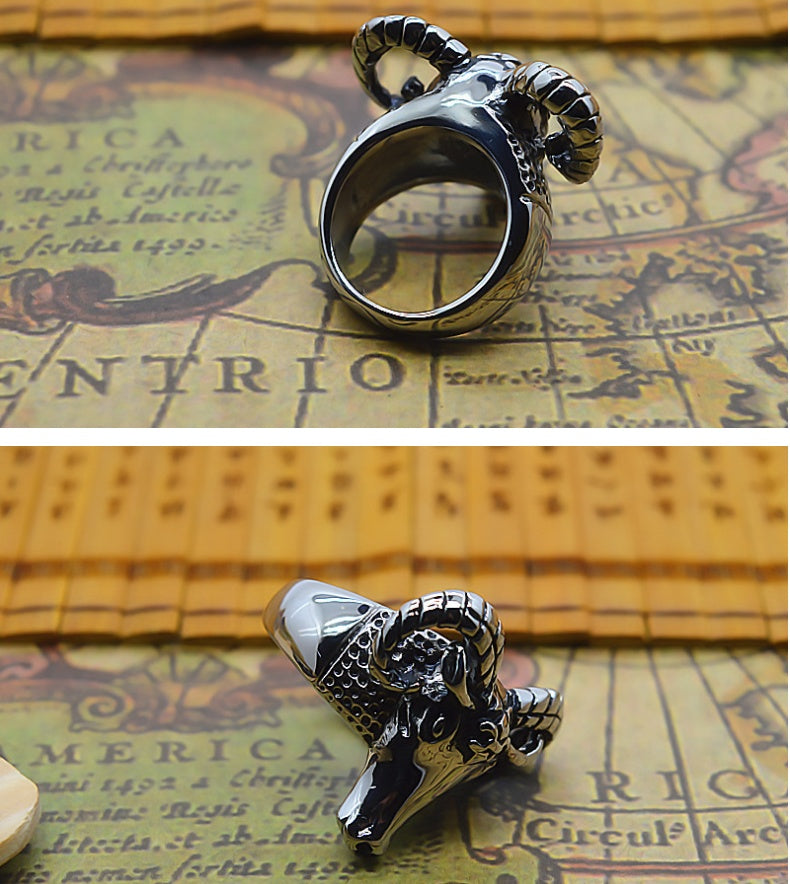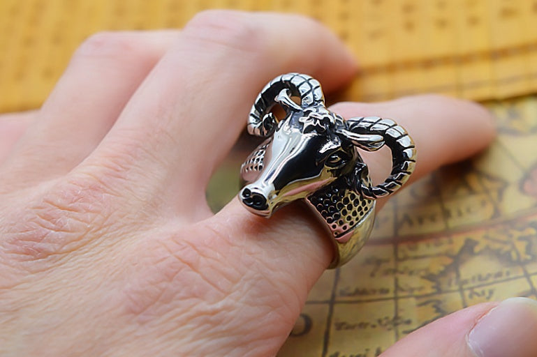 Titanium steel sheep head ring man domineering ring personality foreign trade jewelry