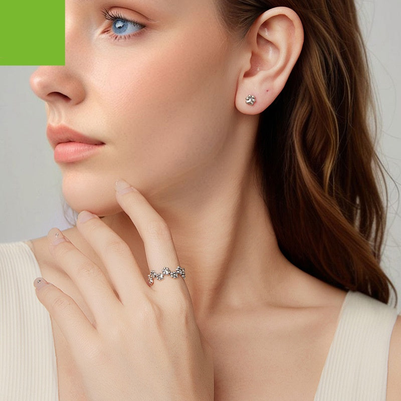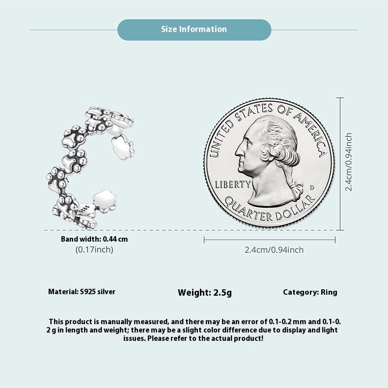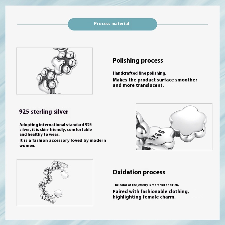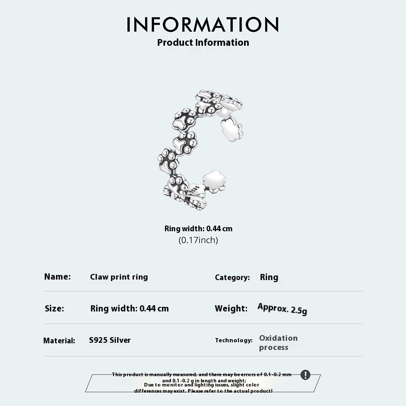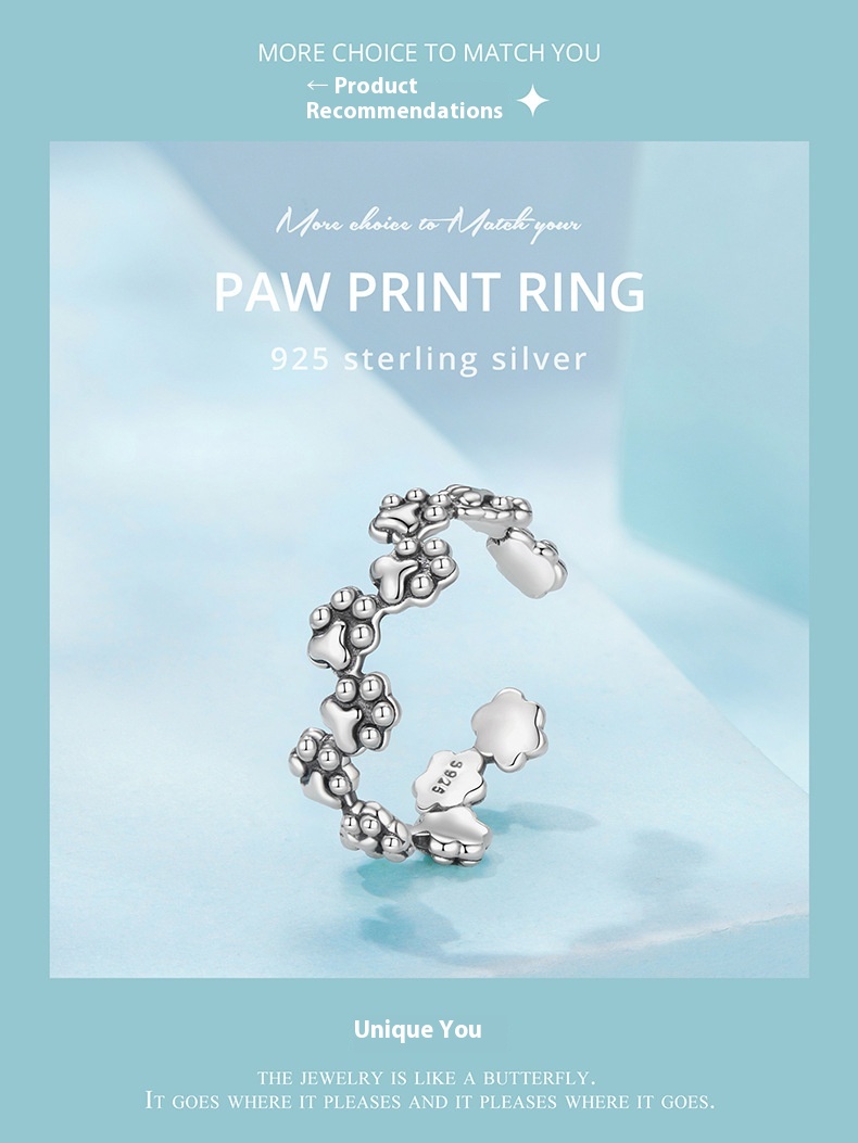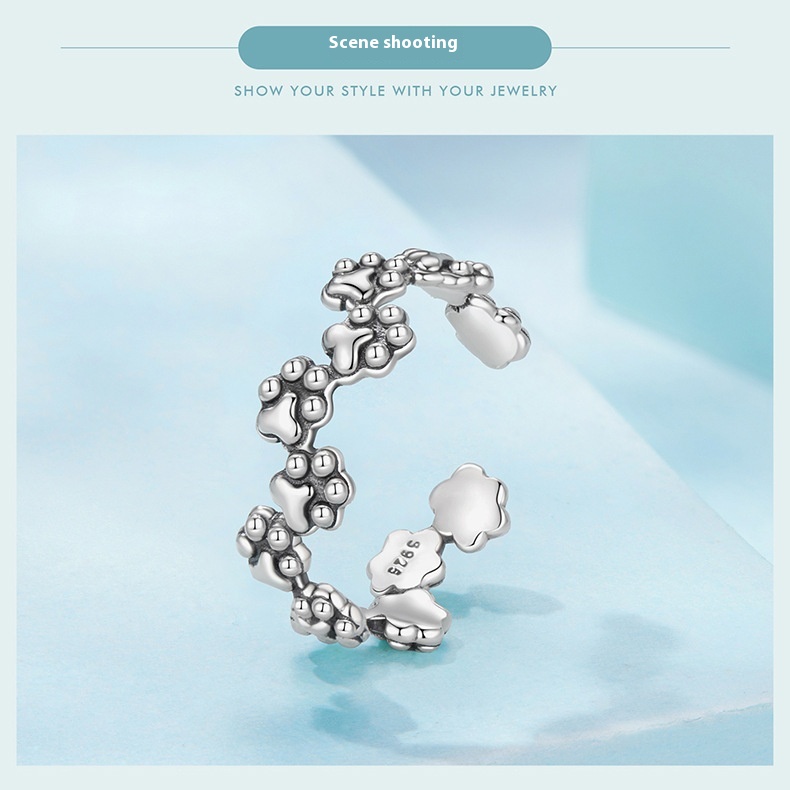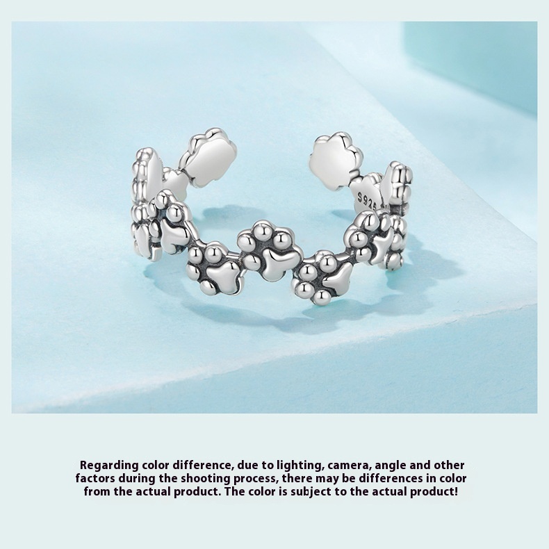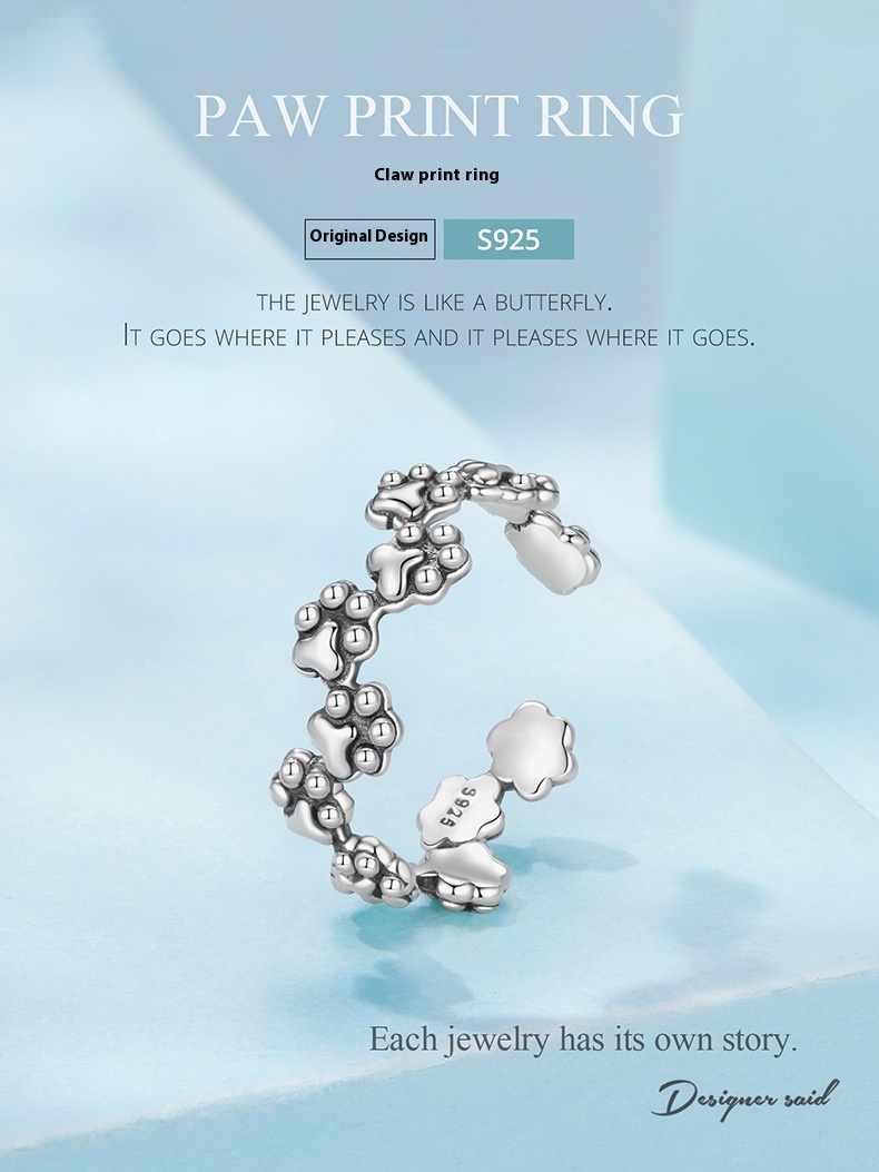 Vintage Pet Cat Paw Print Open S925 Sterling Silver Ring